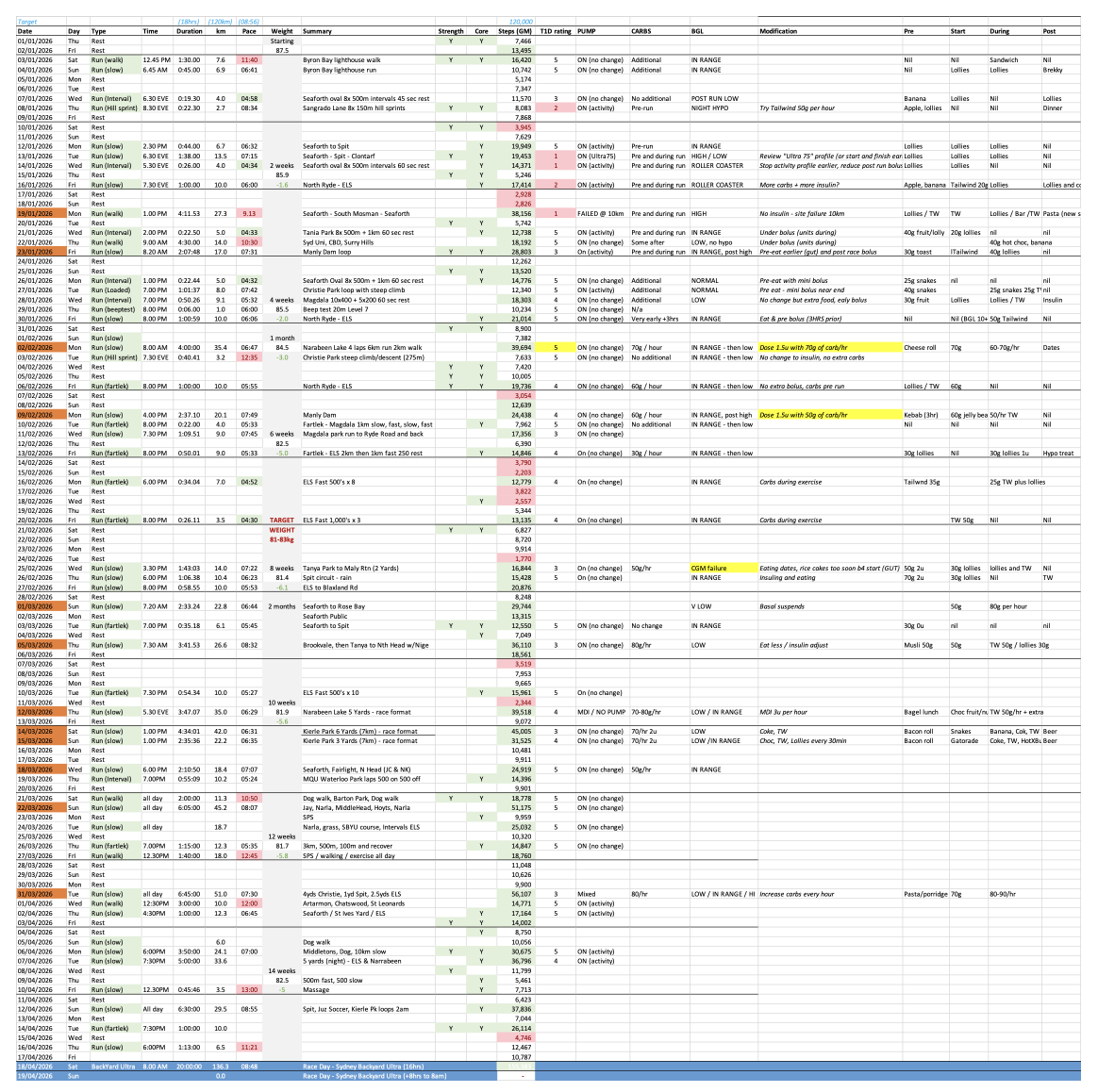 I kept records of training run distance, speed and duration, what I’d eaten, and my insulin, blood glucose and energy responses.